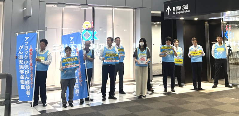 ジェイアンドエス保険サービスは、「アフラック小児がん経験者・がん遺児奨学金制度」の活動に賛同し、2025年9月25日(木)都内での街頭募金活動に参加いたしました。